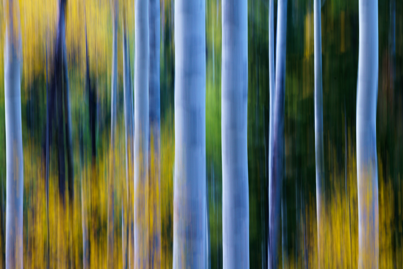 Another favorite technique for making abstract and ethereal fall images is to embrace blur by intentionally moving the camera during the exposure. This is referred to as Intentional Camera Movement or ICM. I like to use the technique when I’m photographing a group of trees with a very graphic pattern of trunks. It works best when the trunks are either a brighter tonality than the the background, as in the case with aspens or white birches for example, or when the trunks are darker than the background. As with the previous tip, experimentation is key. You’ll probably find that a shutter speed of around 1/8 to 1/30 of a second works the best. No need to use a tripod since the blur is the whole point and it’s a little easier to move the camera while hand holding. Set your camera to continuous shooting and during the exposure simply move it up and down, tracing the verticality of the tree trunks. You’ll find that keeping the trunks relatively straight will help anchor the composition and create visual harmony. Again, experimentation is key. If you don’t like what you are getting then vary some aspect of the technique; try a faster or slower shutter speed, try moving the camera faster or slower during the exposure, etc. You can also try rotating the camera or zooming the lens in or out during the exposure to create an even more abstract presentation of the subject.
